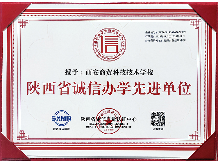 西安商貿(mào)科技技術(shù)學(xué)校成立于2004年,是一所隸屬于陜西省人力資源和社會保障廳的全日制省屬院校。學(xué)校坐落于西安市未央?yún)^(qū),毗鄰國家AAAA級漢城湖景區(qū),交通便利,環(huán)境優(yōu)美,設(shè)施完善,占地面積180余畝,綠化率達(dá)45%,三季有花、四季常青,被譽(yù)為“園林式校園”。秉承“厚德強(qiáng)技,知行合一”的校訓(xùn),堅持內(nèi)涵式發(fā)展,注重養(yǎng)成教育,培養(yǎng)德、智、體、美、勞全面發(fā)展的高素質(zhì)現(xiàn)代化技能人才。